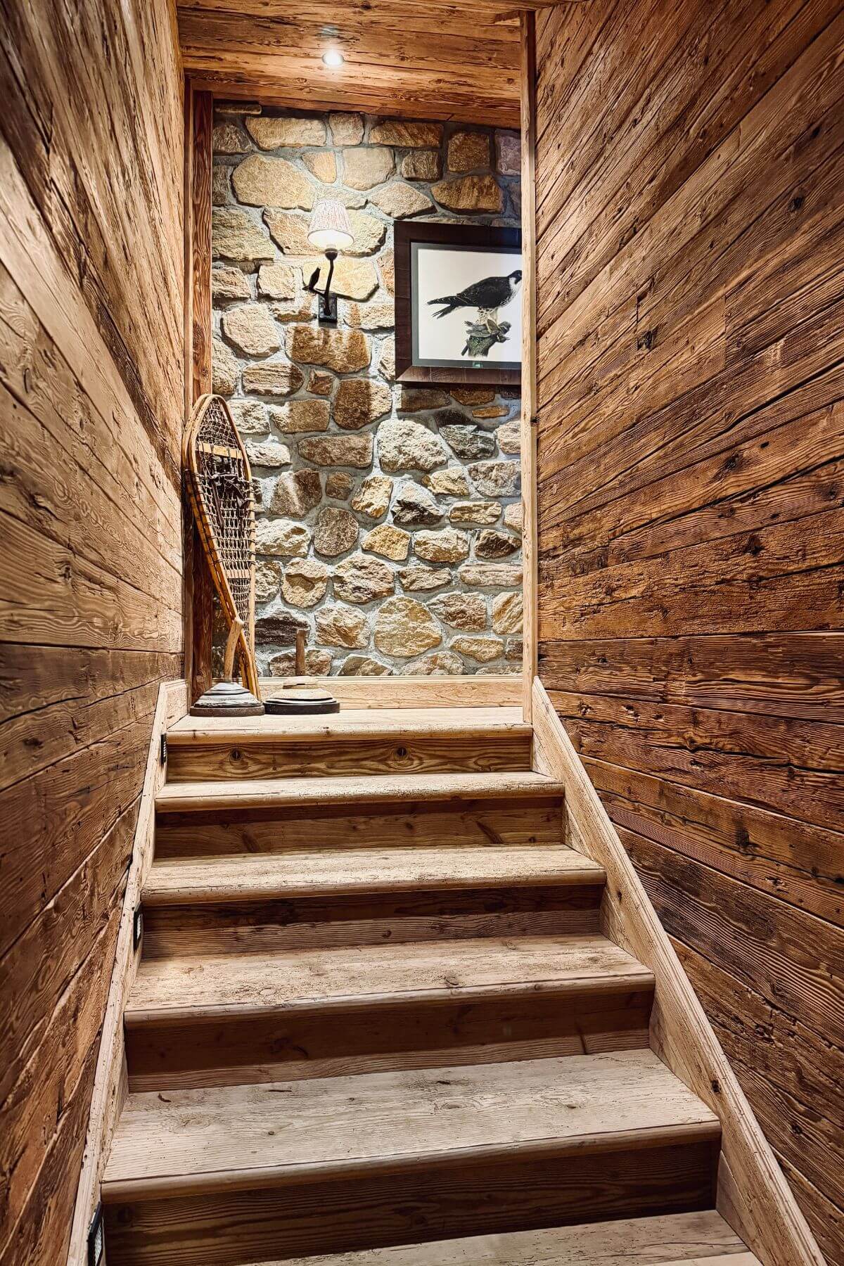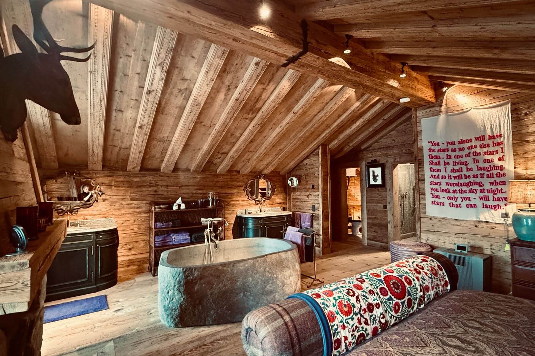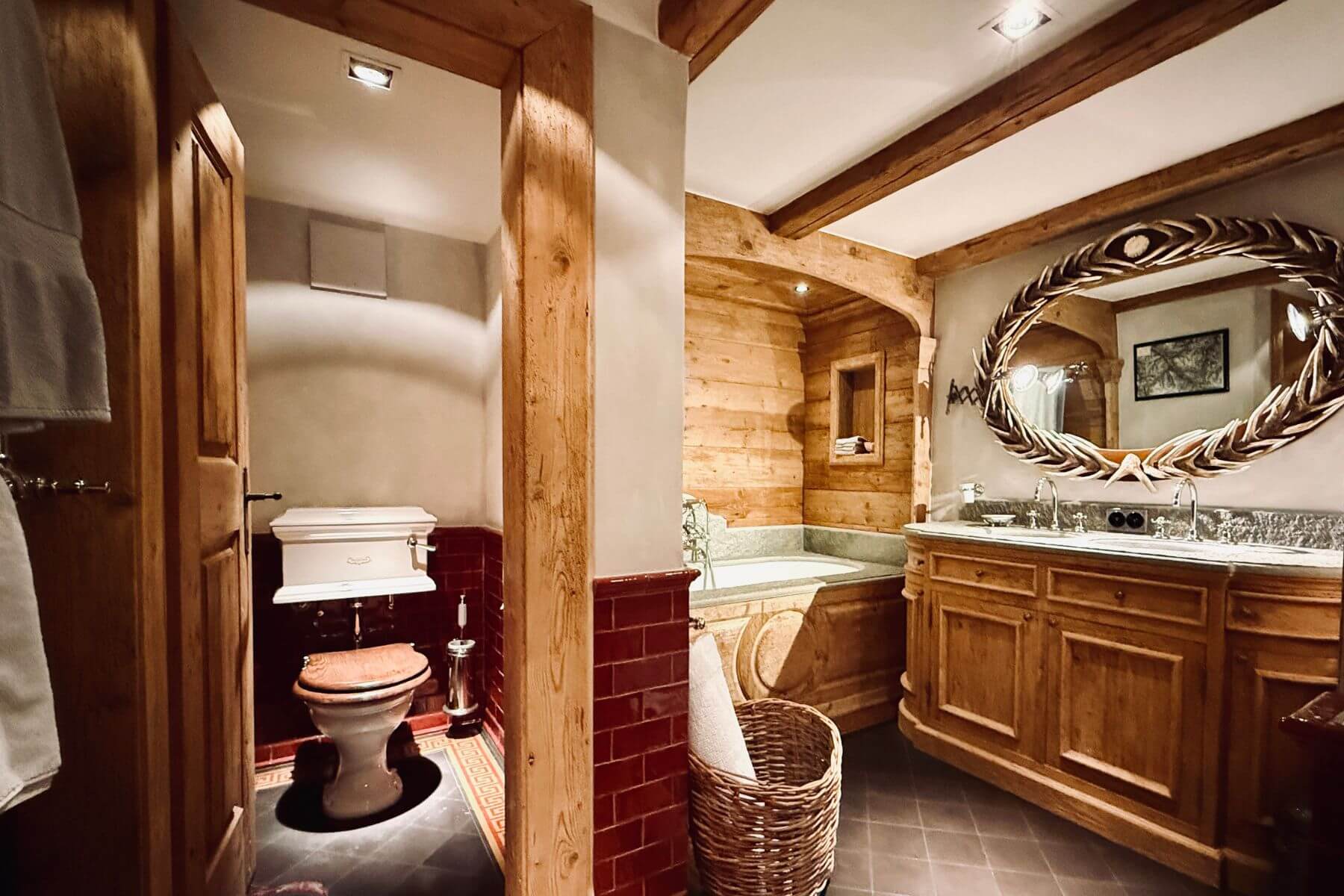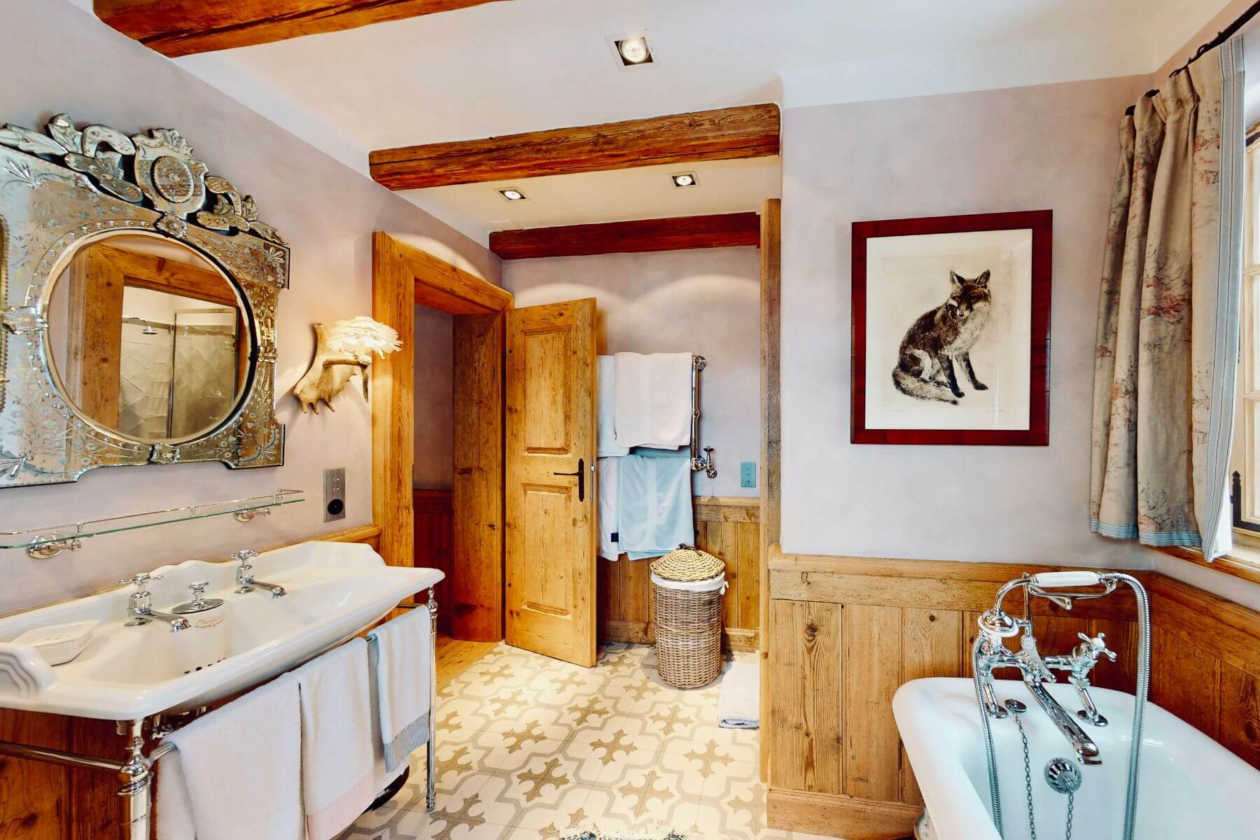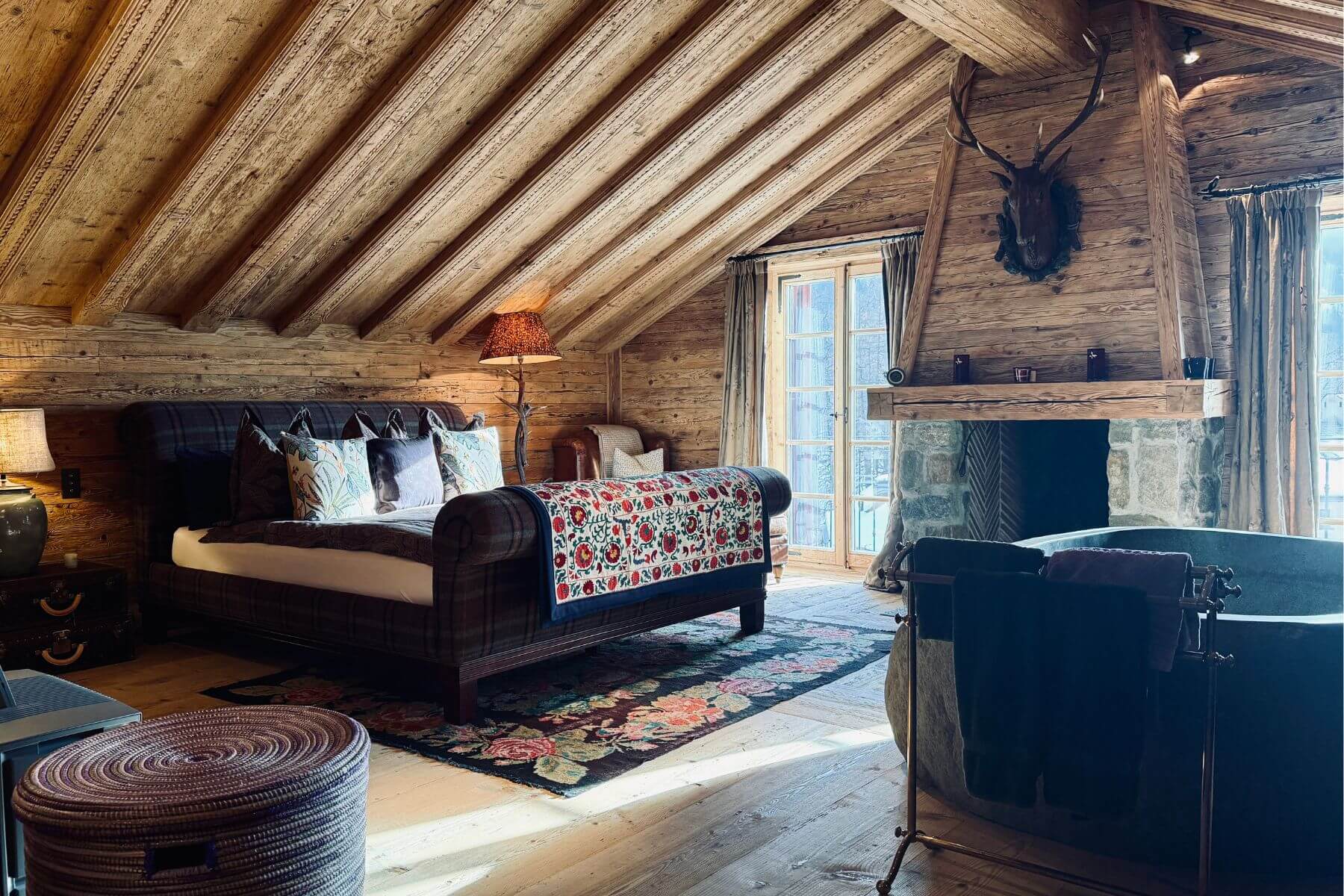 The chalet features a magnificent master suite on the top floor, complete with a private en-suite bathroom and a stunning free-standing bathtub: the perfect place to unwind after a day in the mountains.