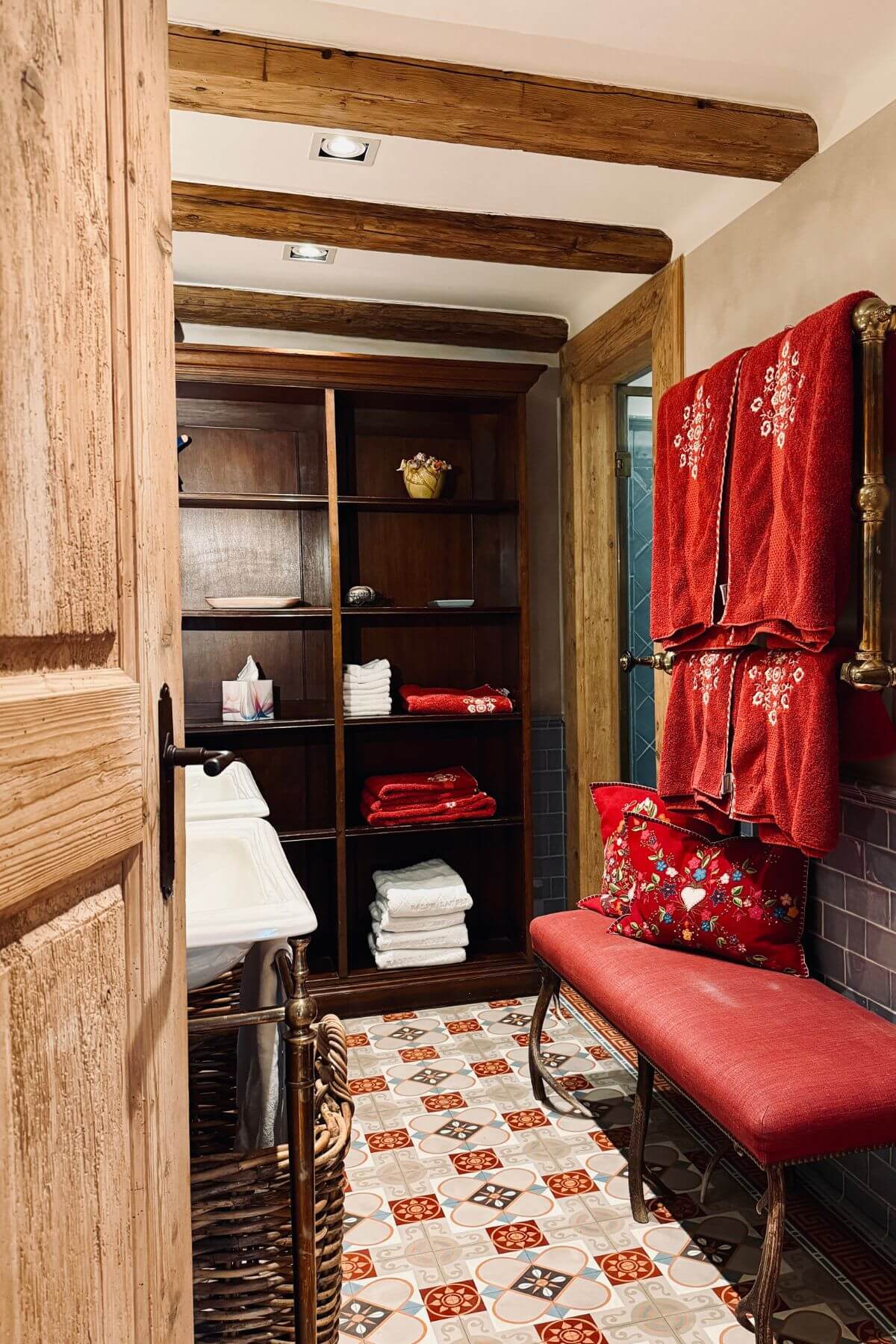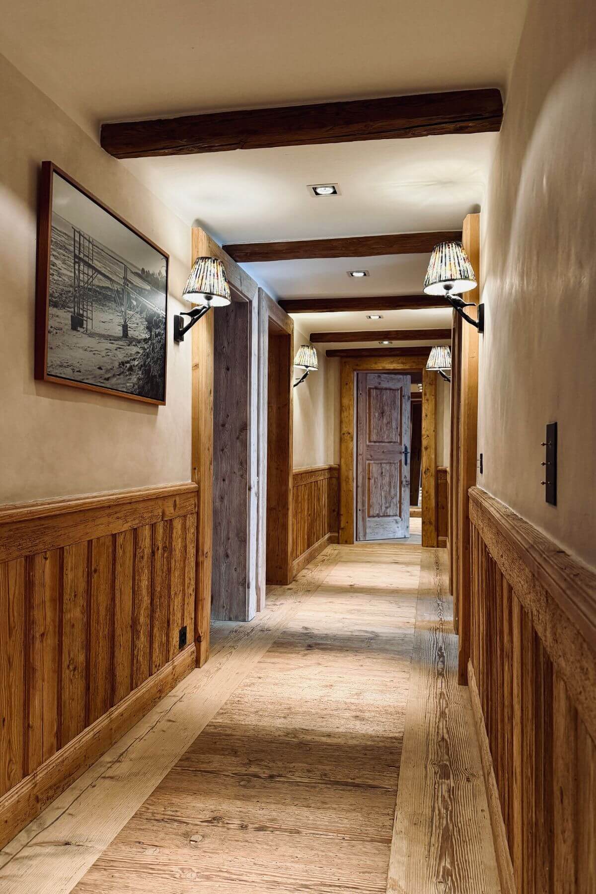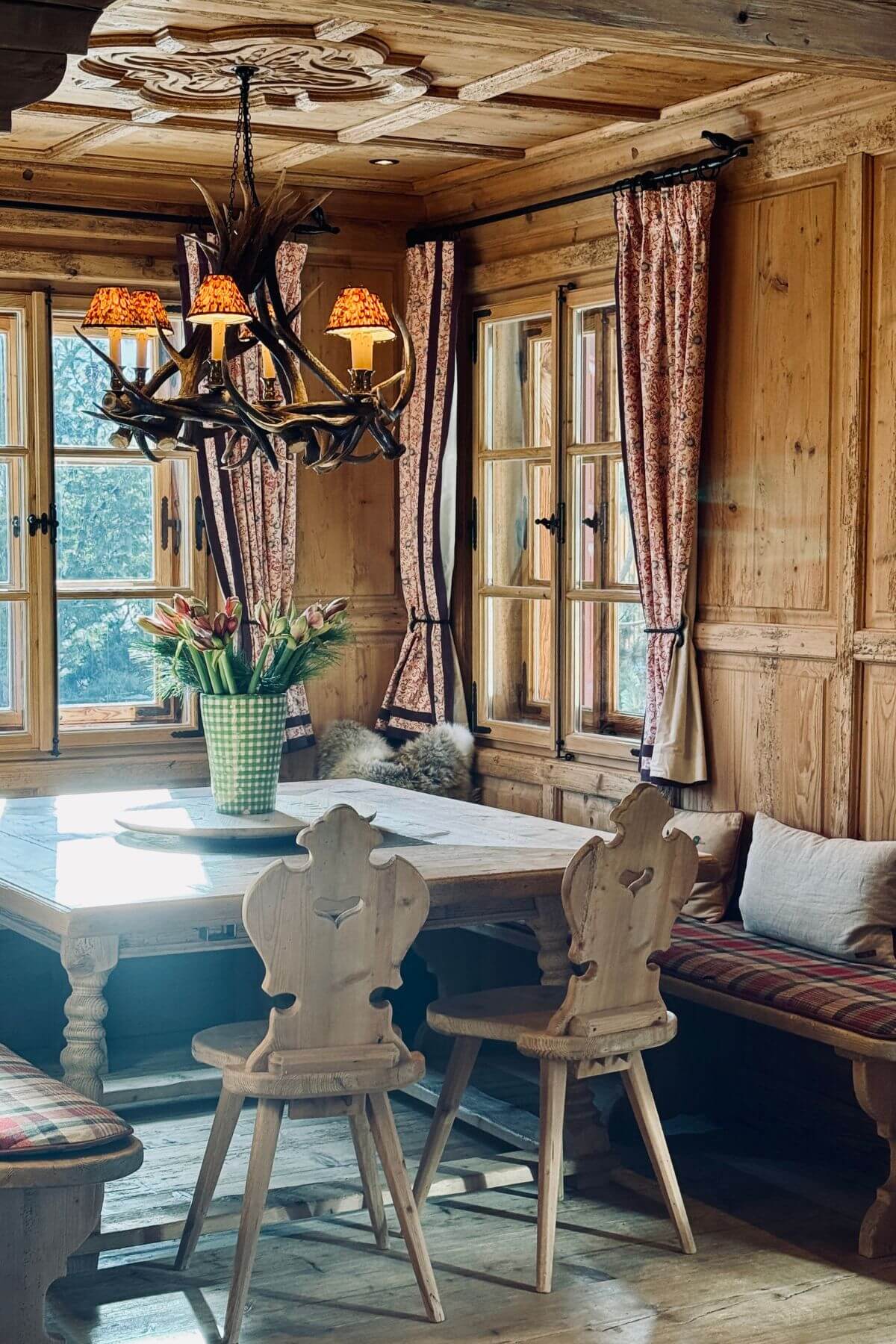 Chesa Goodmountain is nestled on a hillside overlooking the picturesque mountain village of Samedan. In the heart of the village, traditional rows of houses adorned with intricate Sgraffito create charming, postcard-perfect scenes.
