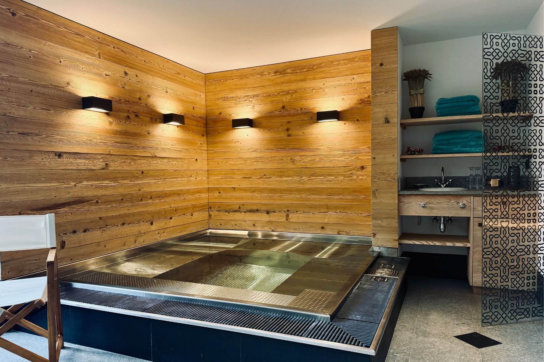 After a day on the slopes, guests can retreat to the chalet’s private spa: a sanctuary of tranquility featuring a sauna, jacuzzi, and steam room.